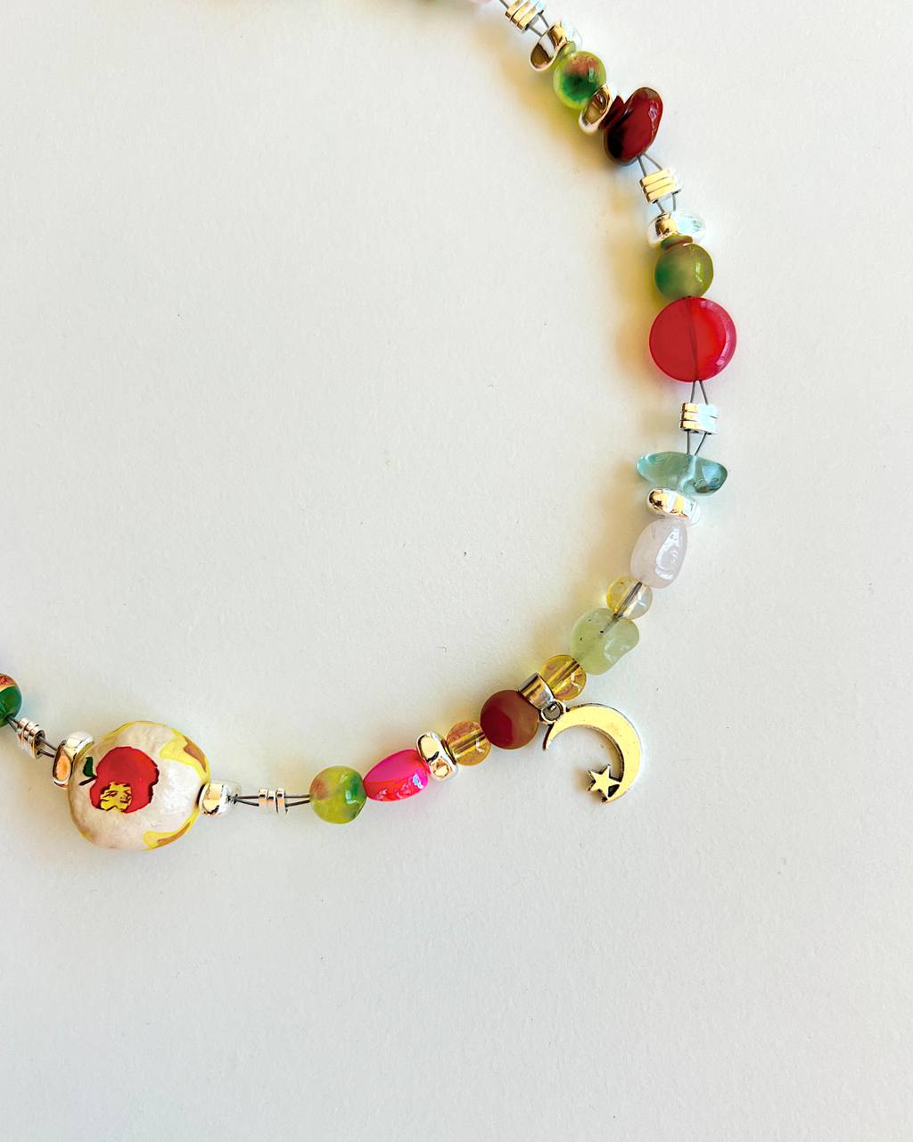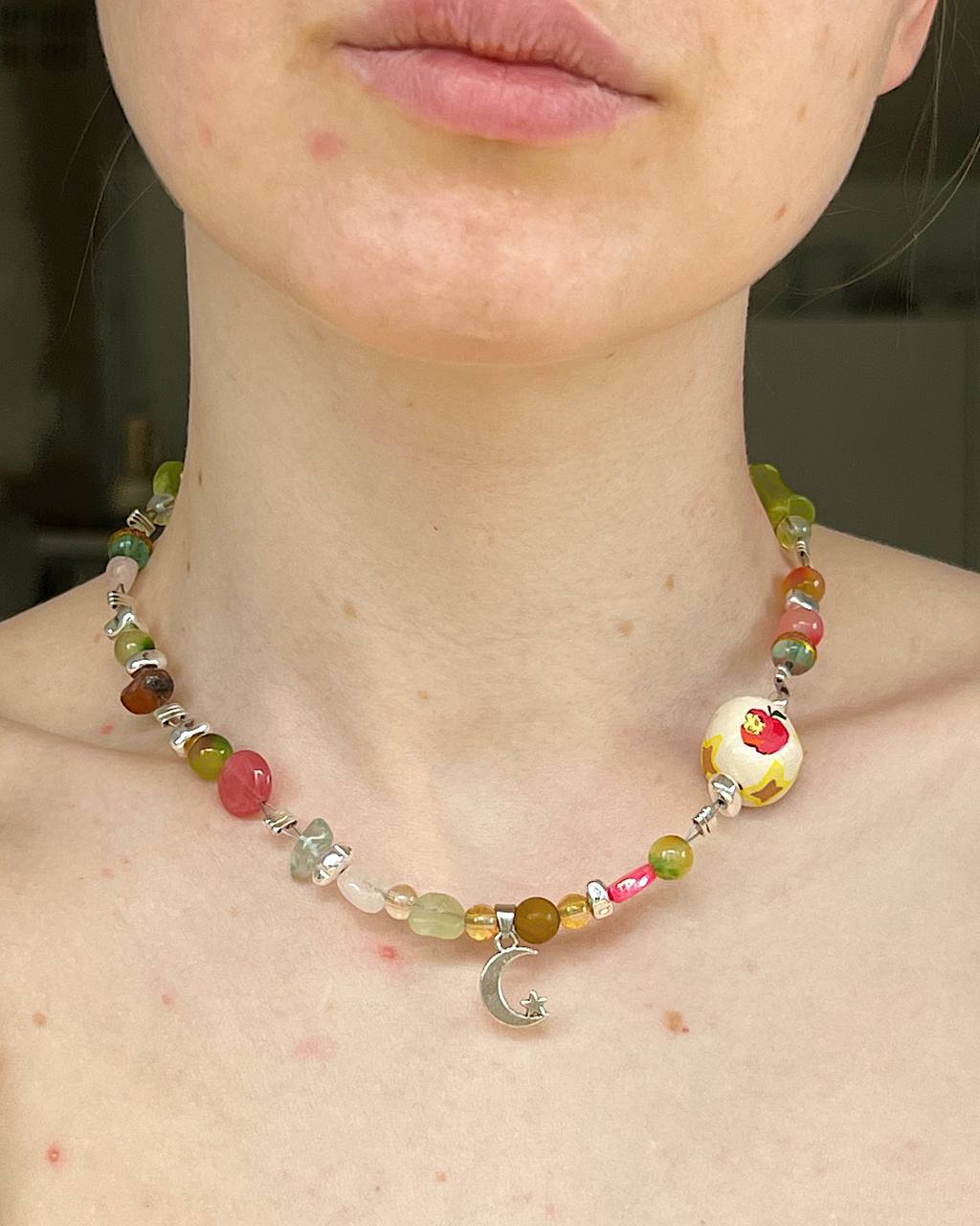 Glass, airdry clay, plastic, natural stone, stainless steel. Single copy. Length - 42cm