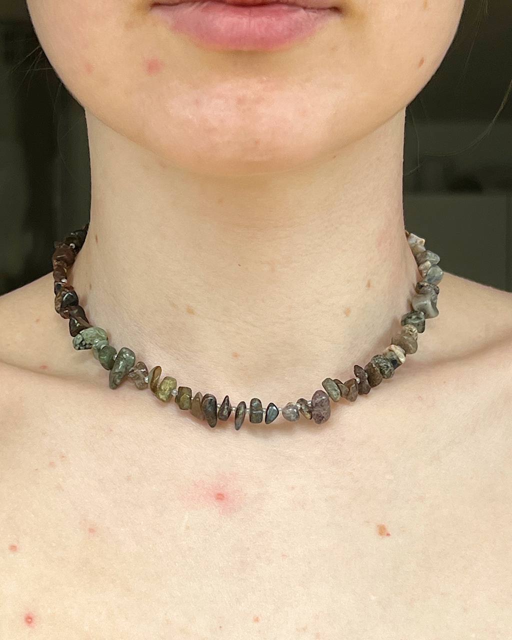 Glass, stone-chip, stainless steel. Single copy. Length - 38.5cm (+4cm)
